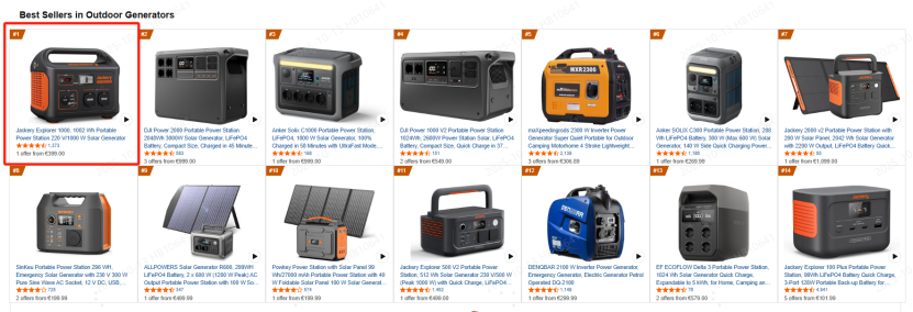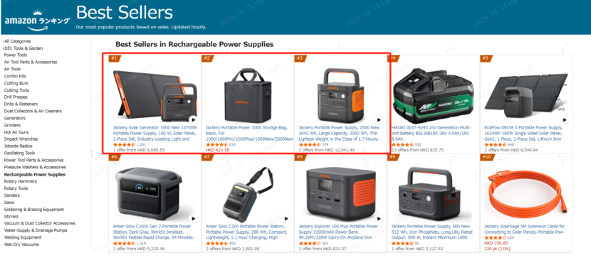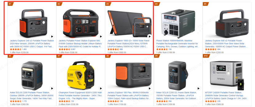 欧洲市场同样表现亮眼,英国亚马逊户外电源品类市占第一,不仅登顶畅销榜,更包揽前三席位;